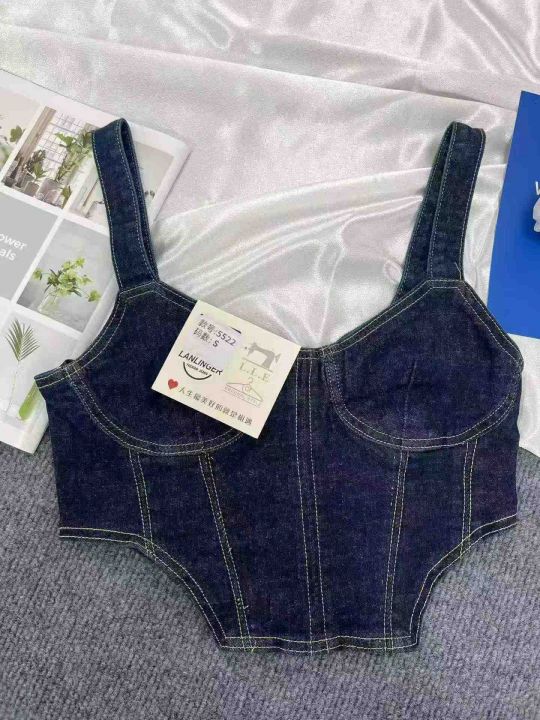 美式复古牛仔吊带抹胸个性辣妹修身显瘦上衣490件全清8...