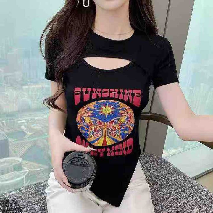 ☕️镂空上衣性感短袖t恤女显瘦修身洋气百搭辣妹T恤1000件全清6.8元 ,分货...