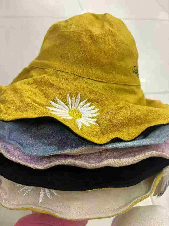 1000件双面小雏菊渔夫帽女夏天日系遮脸韩版潮百搭遮阳大沿太阳防晒帽子,棉...