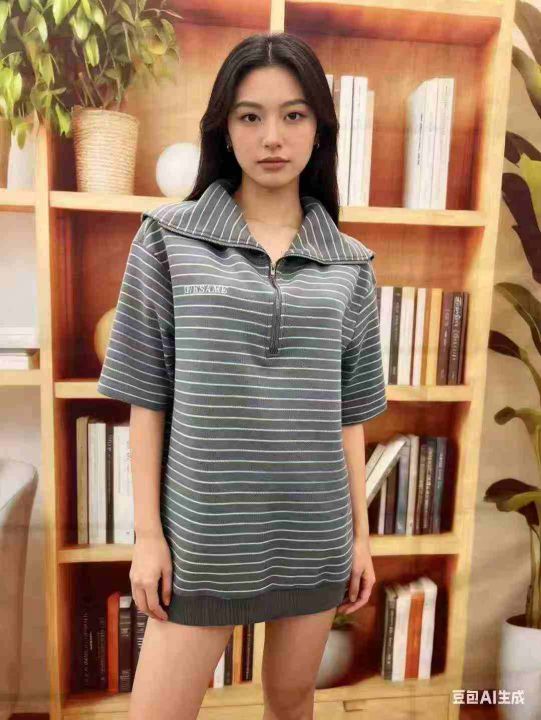 全清8.8元/件64件灰蓝翻领条纹半拉链针加厚宽松外穿打...