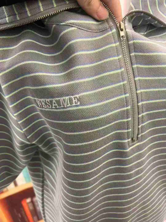 64件灰蓝翻领条纹半拉链针加厚宽松外穿打底polo上衣,独立包装带吊牌,码数S-XL。