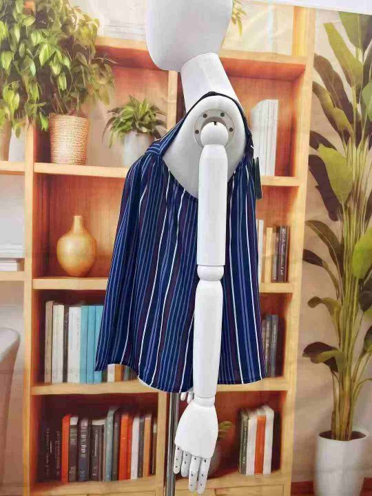 89件法式条纹宽肩一字领宽松吊带上衣,独立包装带吊牌,码数S-XL。非常适合实体店售卖。
