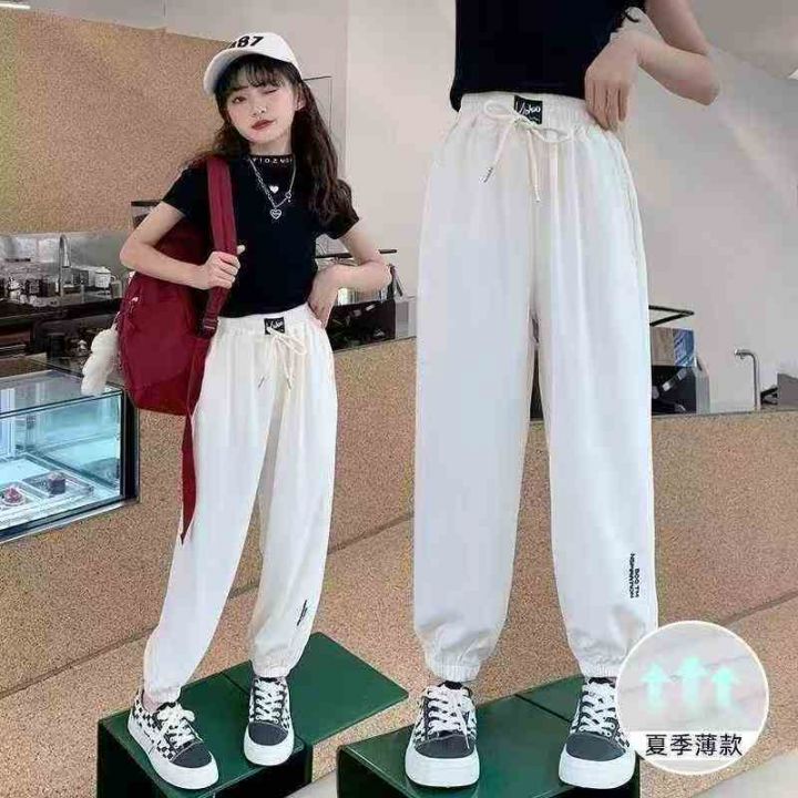 时尚洋气休闲简约冰丝薄款透气户外运动风夏季新款儿童童装长裤,数量150件左右,码数120-170,独立包装。