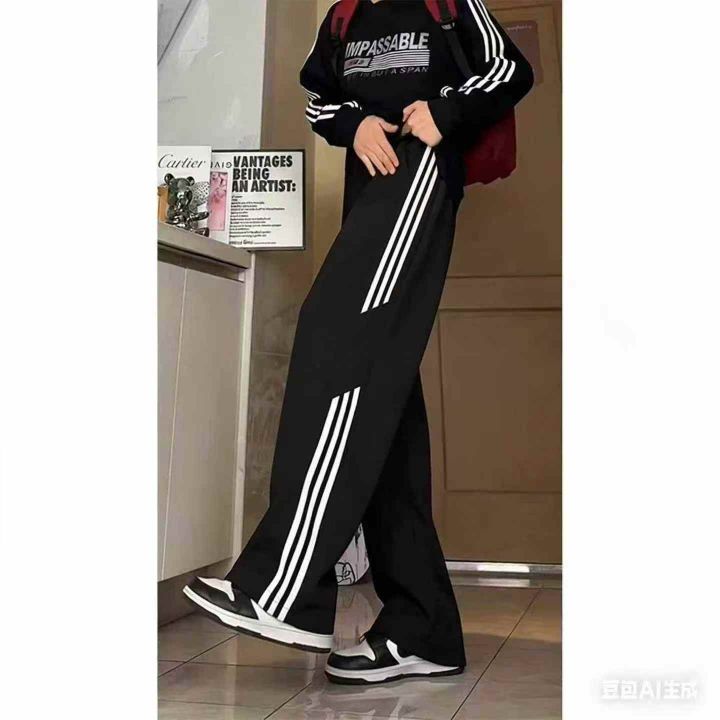 全清7.8元垂感直筒休闲篮球裤三条杠条纹运动卫裤男生...