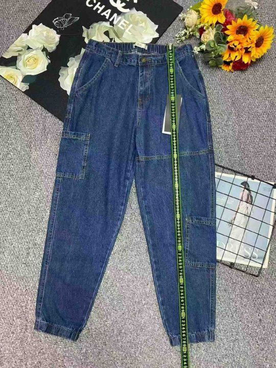 春季新款品牌原单复古蓝洗水棉多袋工装牛仔束脚裤,独...