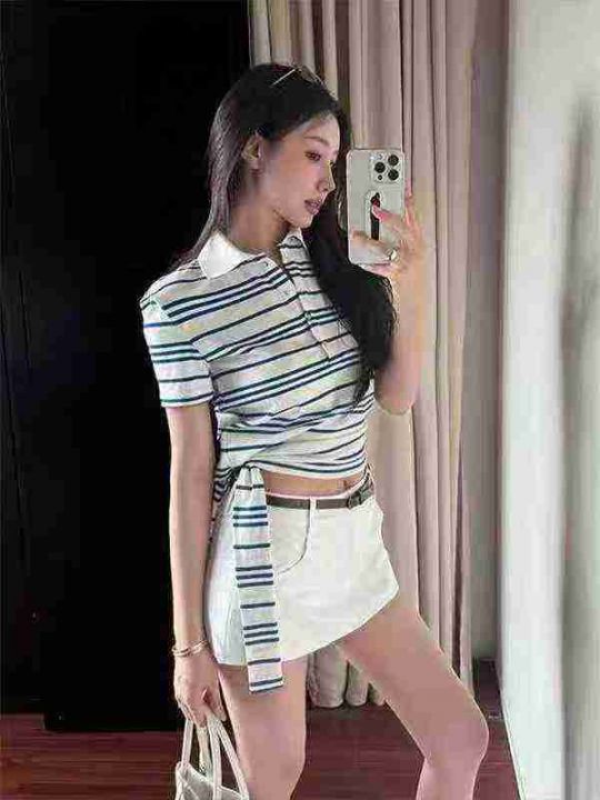 [月亮]:7.5清190件(不分货)[月亮]:美式蓝条纹Polo领辣妹纯棉短袖[月亮]...