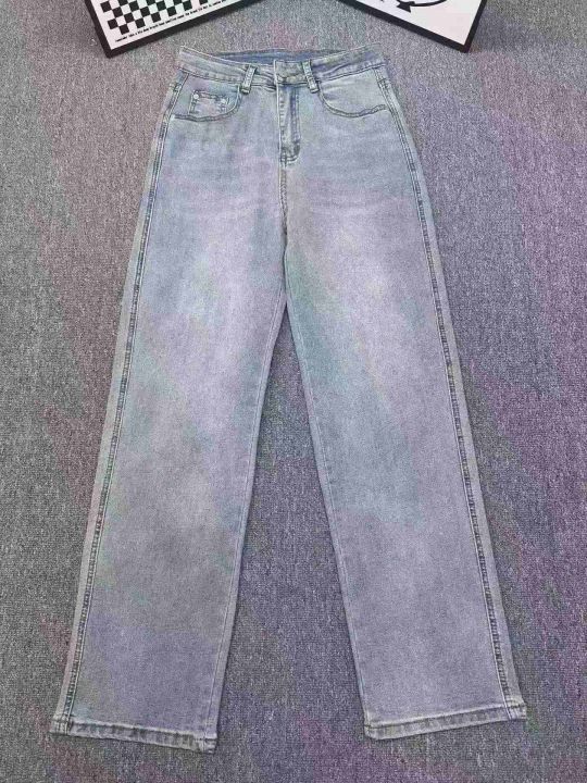 网红款简约复古刺绣直筒牛仔裤女高腰宽松显瘦拖地阔腿...