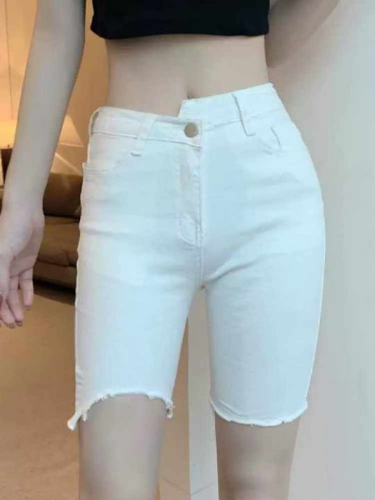 夏季新款洗水棉设计款高弹力毛边骑行牛仔短裤,独立包...