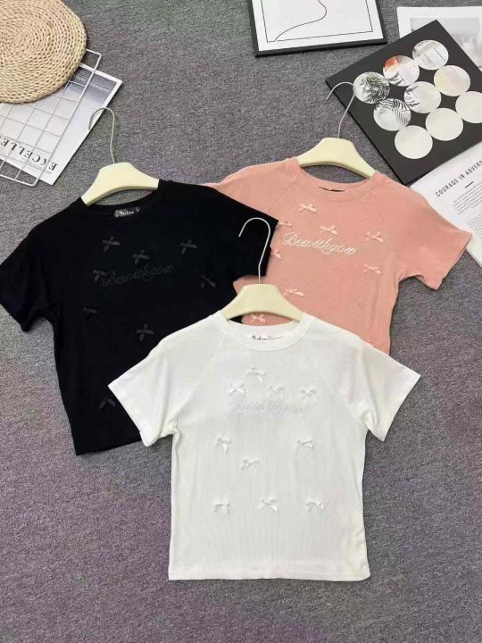 ☕️韩系甜美字母刺绣短袖t恤别致绝美修身显瘦纯欲蝴蝶工艺上衣600件全清8.8元,分货9.8元,码数S到XL,单款3个色,高弹力好质量[庆祝][庆祝][庆祝]重工工艺辣妹T恤