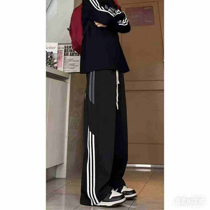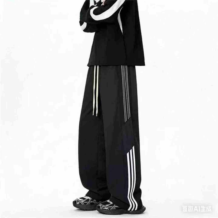 全清7.8元垂感直筒休闲篮球裤三条杠条纹运动卫裤男生...