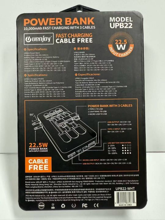 420个 10000毫安充电宝,自带折叠充电器 4条电缆22.5W