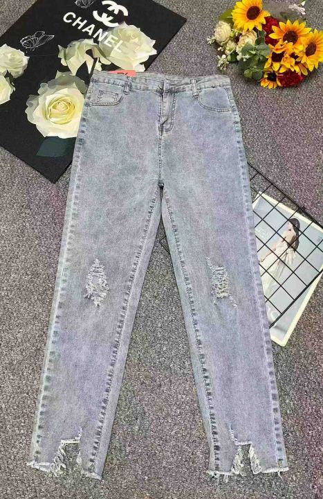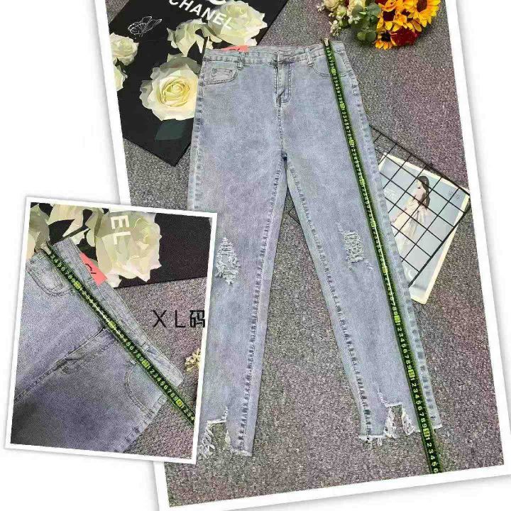 春夏季新款高弹力网红复古洗水棉破洞牛仔小脚裤,独立包装带腰卡,码数M-XL码, 180件左右,全清8.9元超低价秒杀!