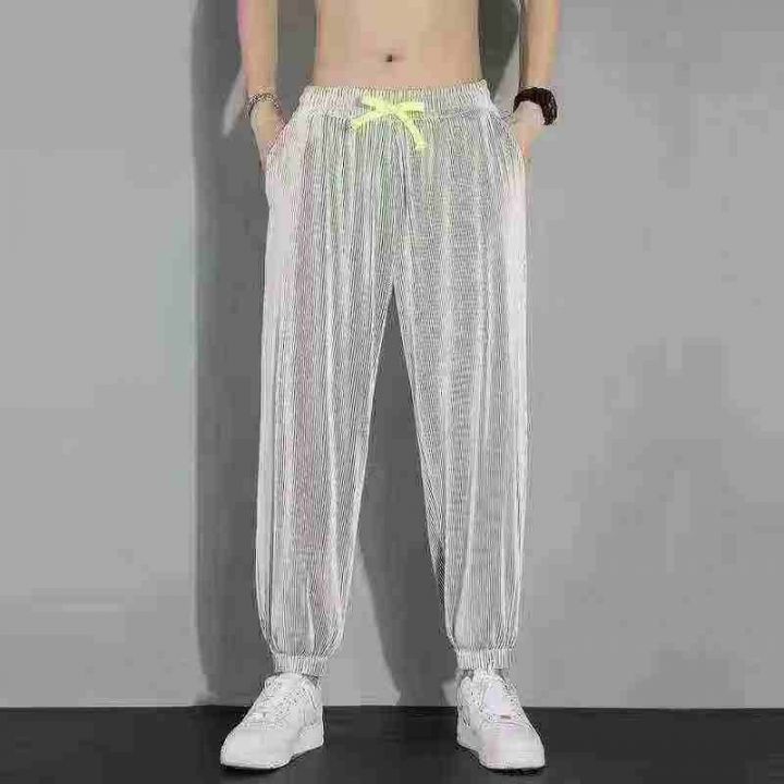 全清6.5元,6538条\'裤子夏季男休闲薄款韩版ins潮牌冰丝条纹运动大码弹力宽...