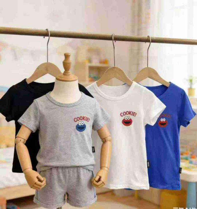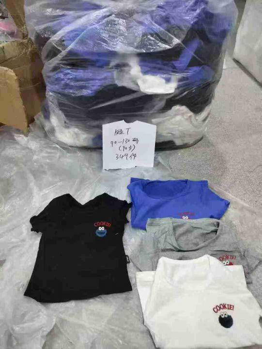 童装棉质短袖349件,面料柔软舒适透气,字母图案刺绣,码数90-130码,防水袋装(模特图仅供参考)全清3.8