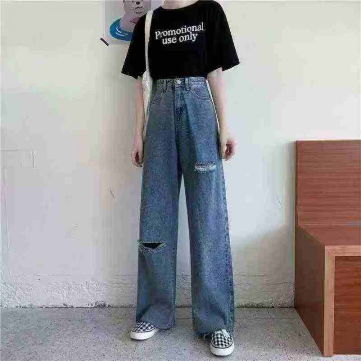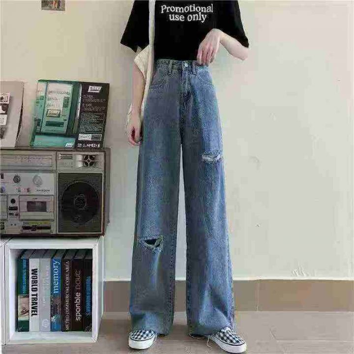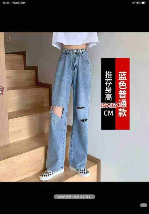 靓妹辣妹破洞阔腿牛仔裤450件,图片款式,独立包装带...