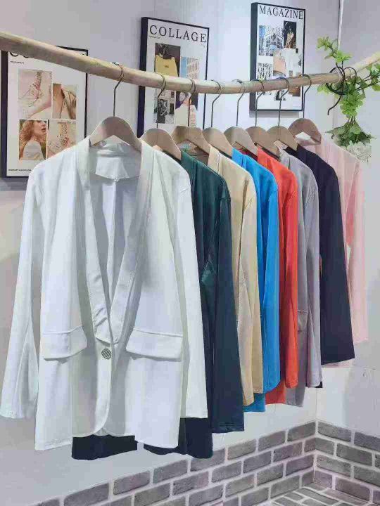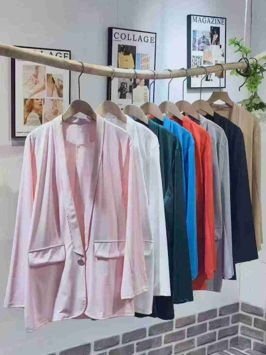 B-55-125,码数S一5XL,数量430件左右,全部独立包装,单款多色,一粒扣,女装休闲西装,版型宽松,分货➕1