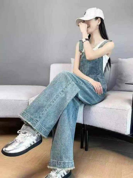 捡漏款,春秋新款网红复古洗水棉牛仔背带直筒阔腿裤,独立包装带腰卡,图片...