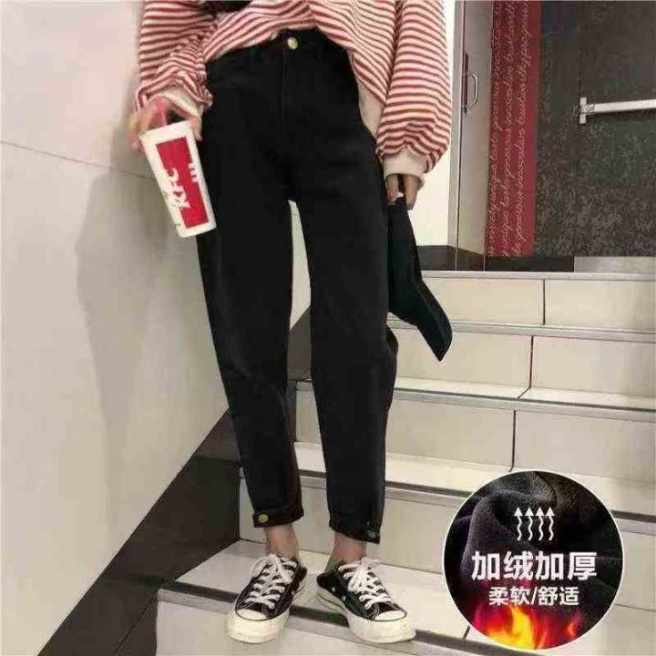 冬季新款加绒牛仔裤女宽松大码高腰直筒外穿阔腿老爹长裤子980件,独立包装...