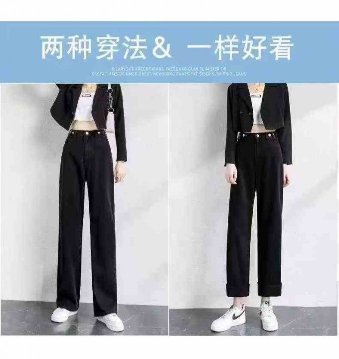 高腰牛仔直筒裤显瘦小个子加绒深蓝美式豹纹直筒烟管裤180件,独立包装带吊...