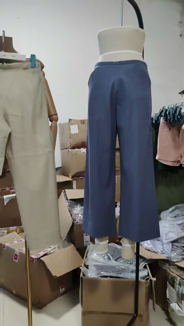 高端货;58件女士长裤,公司品牌货,有杏色和蓝色,面料54%亚麻,尺码(S、...