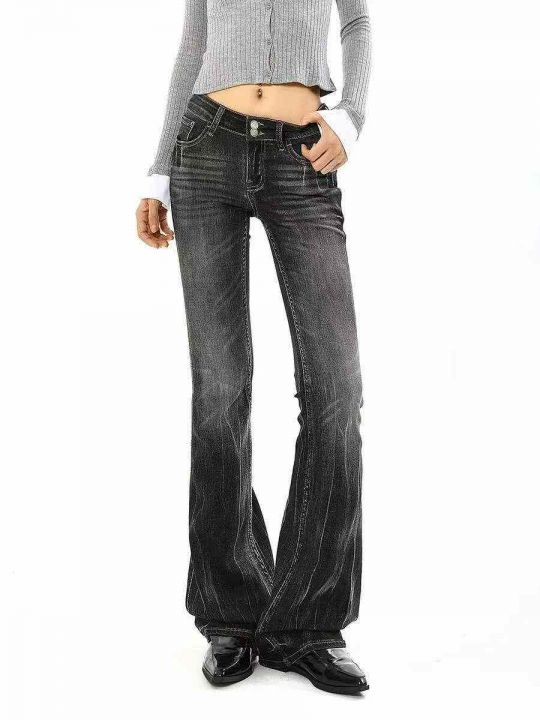 春季新款品牌外贸原单美式复古宽松弹力洗水棉微喇叭牛...