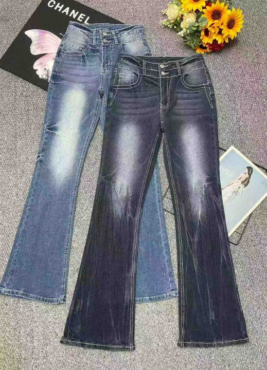 春季新款品牌外贸原单美式复古宽松弹力洗水棉微喇叭牛仔长裤,独立包装,码数XS--2XL码,大码的多深蓝色的多,260件左右,全清13.8元超低价秒杀!分货加一!