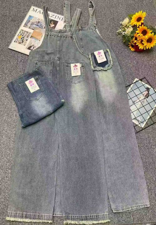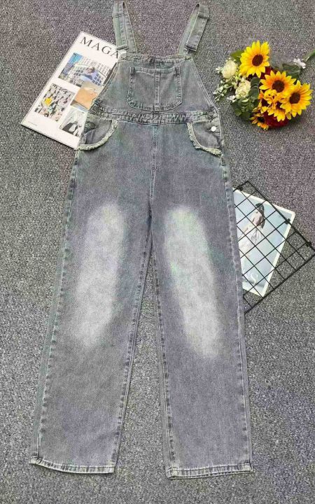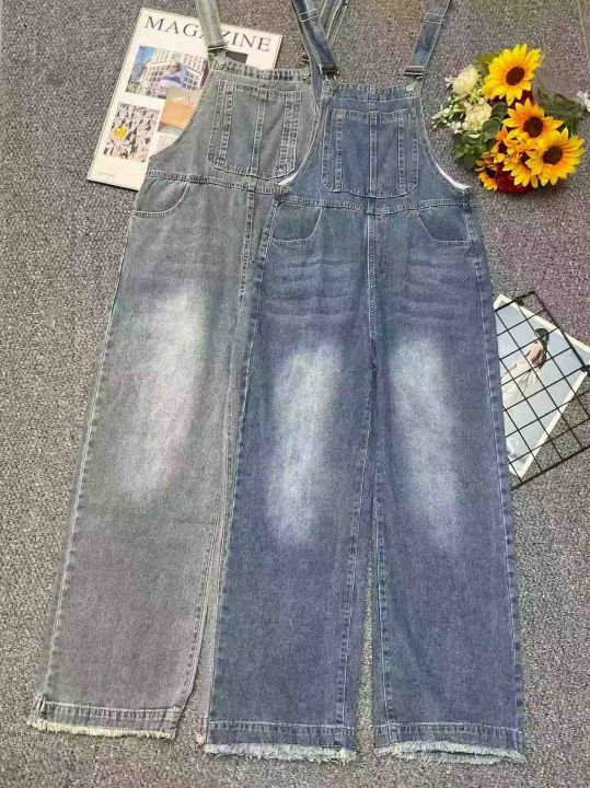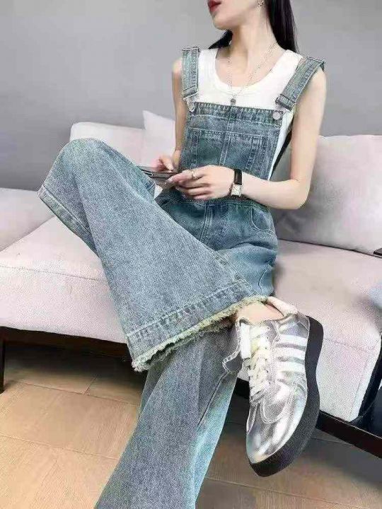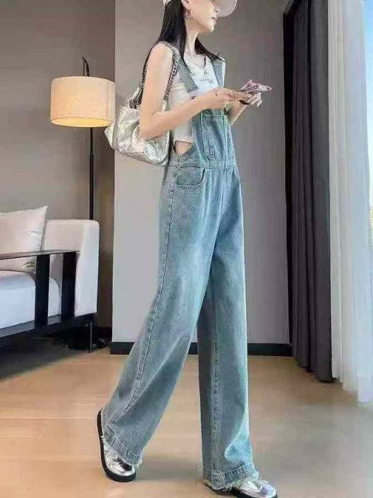 捡漏款,春秋新款网红复古洗水棉牛仔背带直筒阔腿裤,...