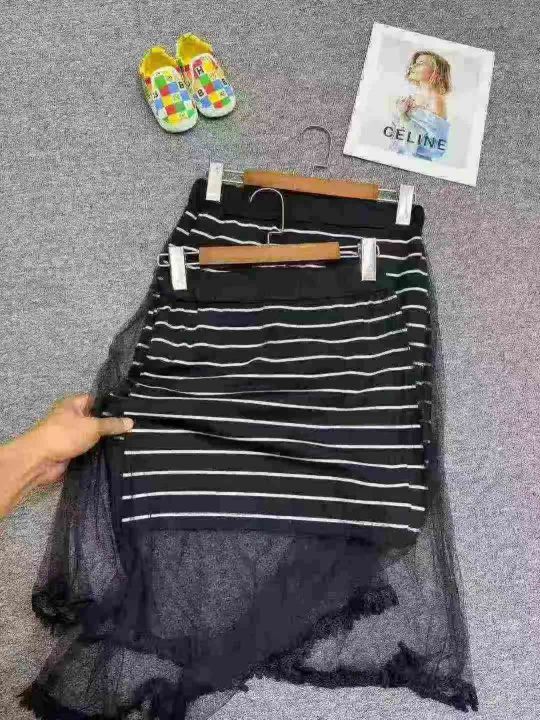 夏季休闲新款高腰松紧半身裙显瘦条纹网纱裙,独立包装...