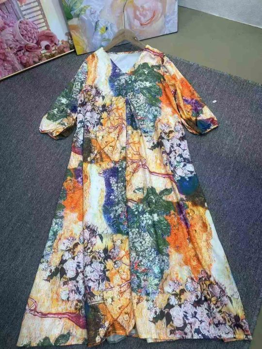 法式高级感印花连衣裙2026夏季新款七分袖裙显瘦通勤气质,图片款,图片色,侧边设计口袋,裙长115厘米,1.2码,独立包装,货品干净,300件左右,8.8清,分货加1