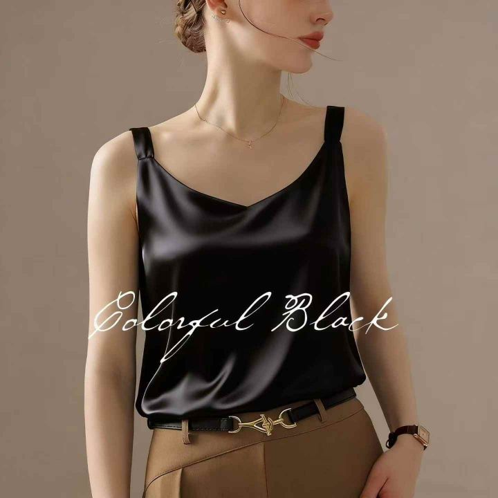 夏季时尚百搭V领吊带背心外穿真丝缎面内搭打底,独立包装,整款多色(黑/香槟色为主),货品新净,1-6码(S~3XL)4码多,3959件,分货加1