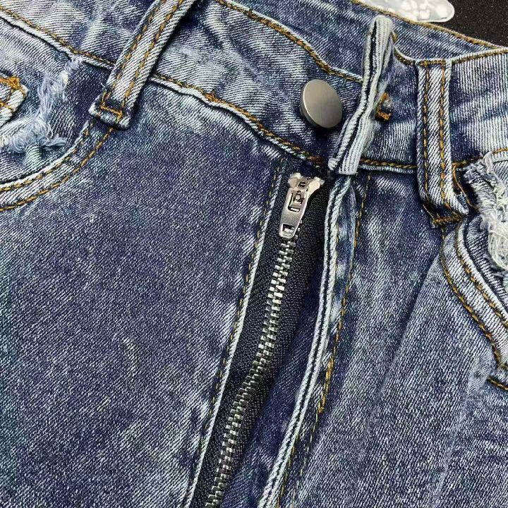 春夏季新款品牌外贸原单美式宽松高弹力洗水棉破洞牛仔...