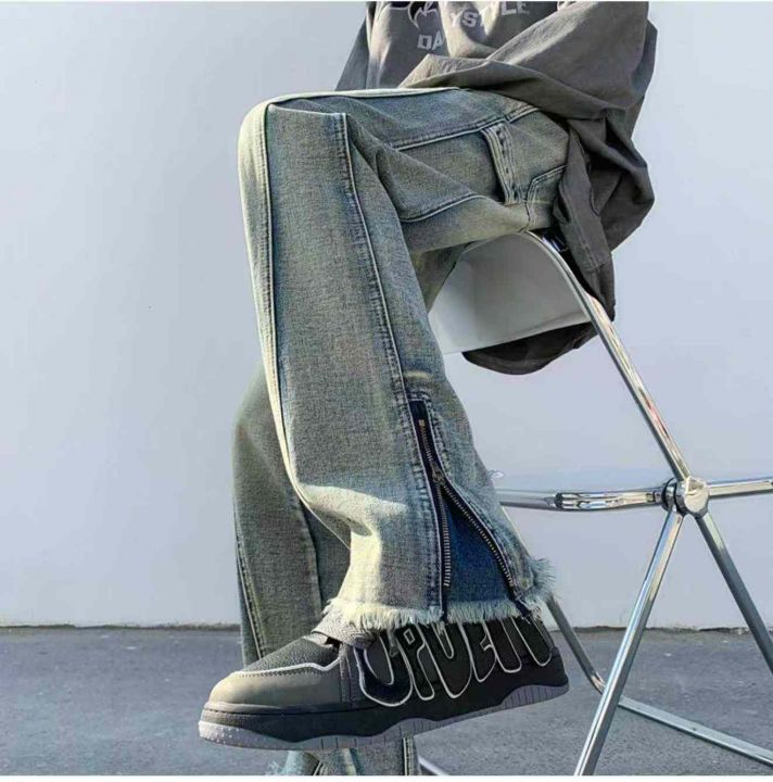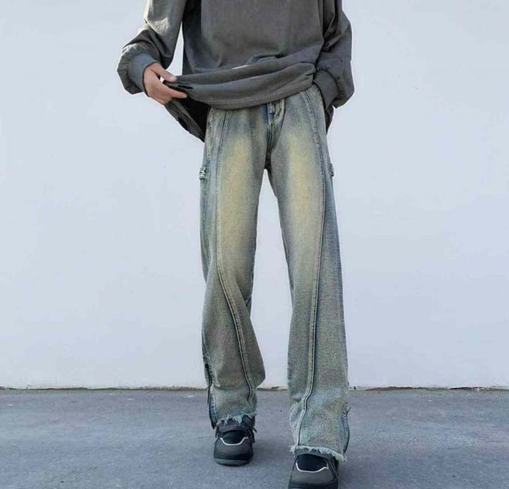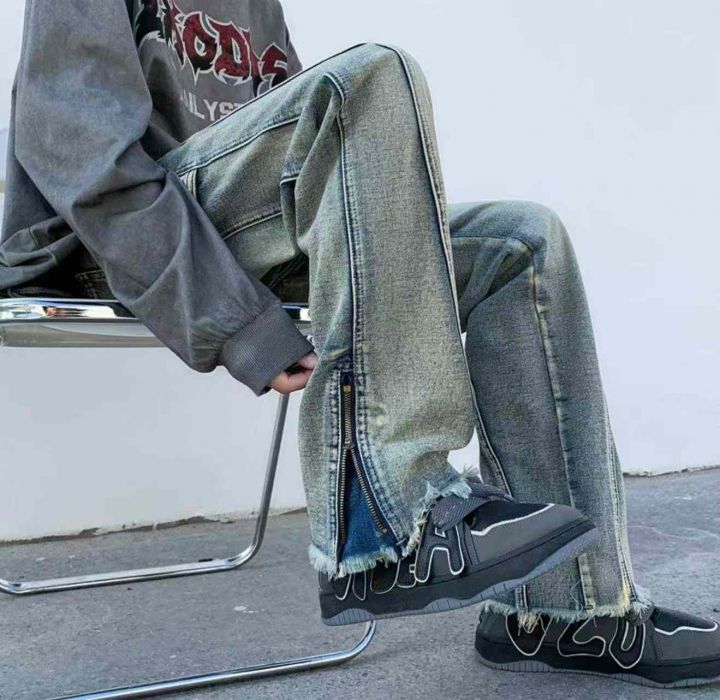 春季新款网红复古洗水棉男士拉链设计款牛仔裤,独立包...