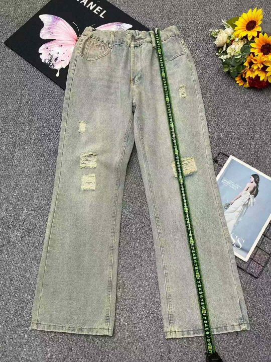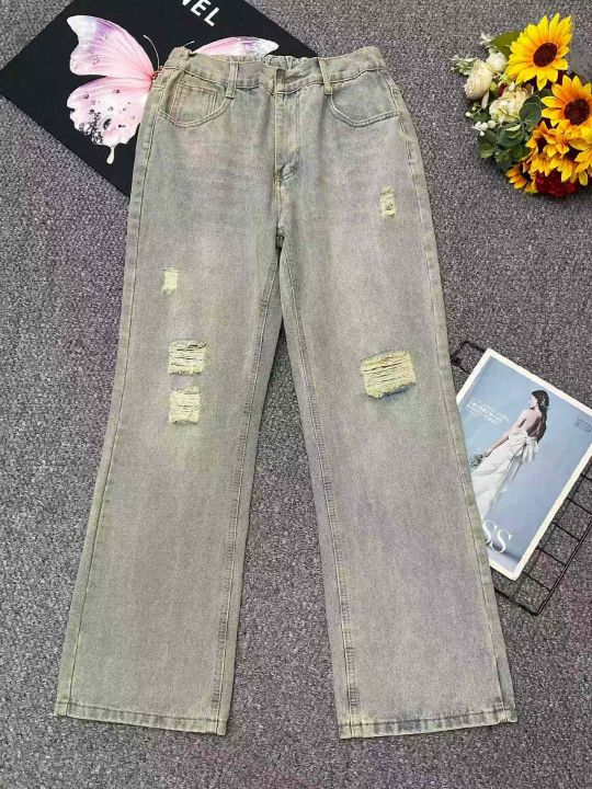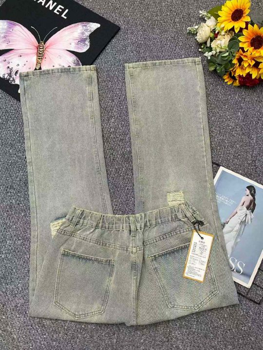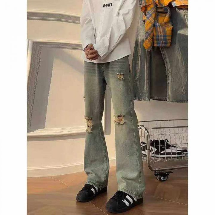 春夏季新款男士洗水棉美式复古乞丐直筒显瘦弯刀微喇牛...