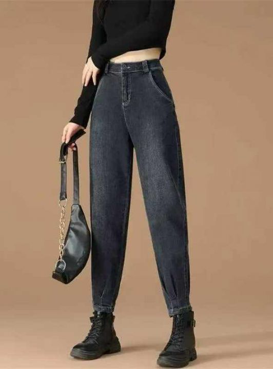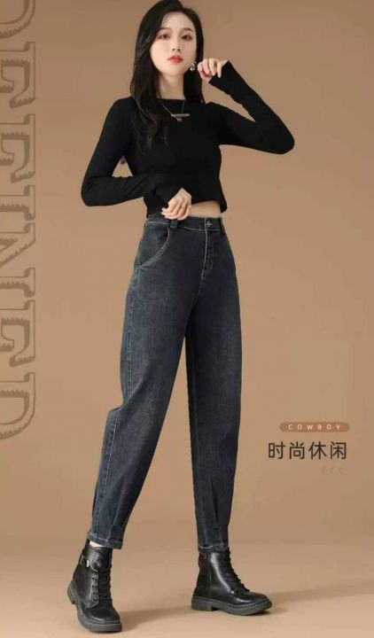春季新款网红复古弹力洗水棉哈伦牛仔老爹裤,独立包装...