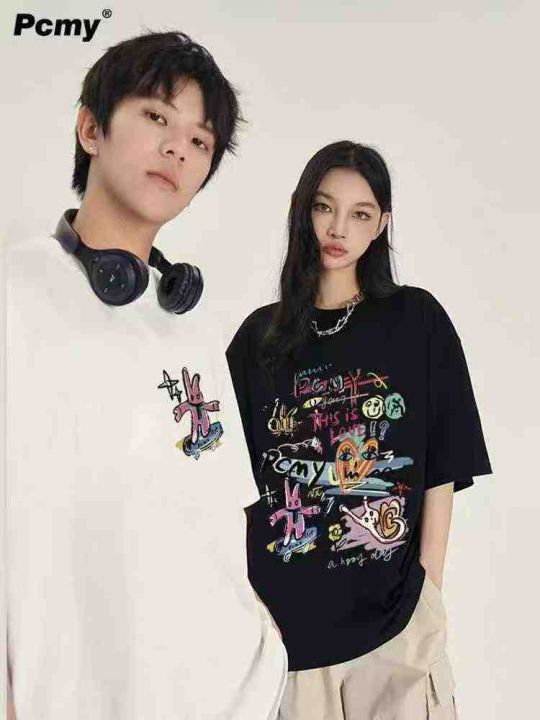 5.9清电商仓回收6294件潮牌男女同款印花宽松短袖T恤,...