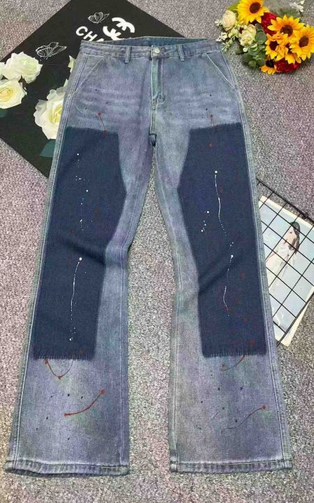 春季新款撞色拼接美式复古设计感直筒牛仔长裤,独立包...