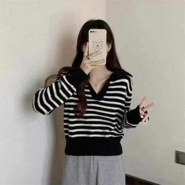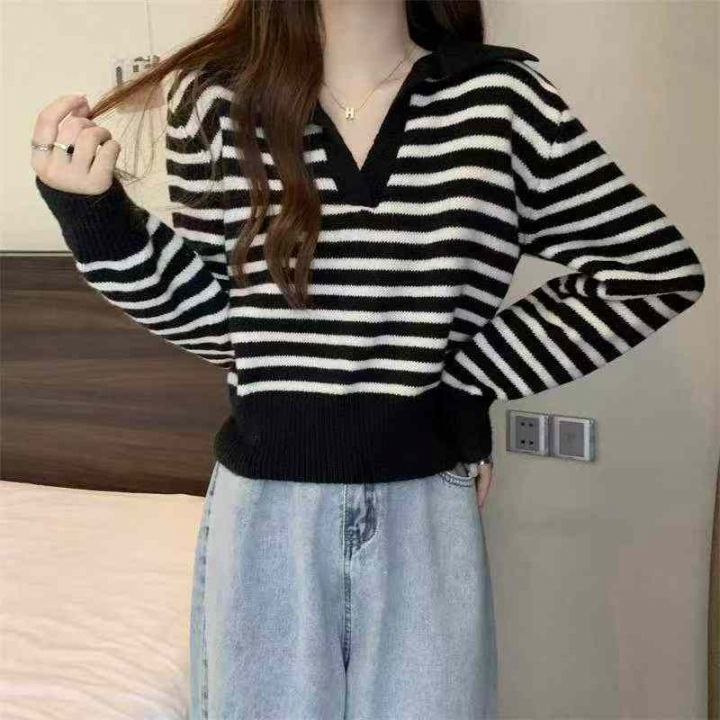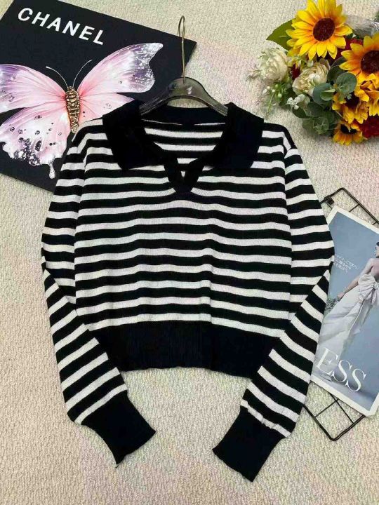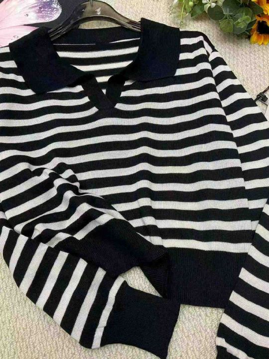 春季新款撞色条纹韩系polo领长袖针织衫,独立包装,均码面料柔软舒适弹力大,140件,全清6.9元超低价秒杀!