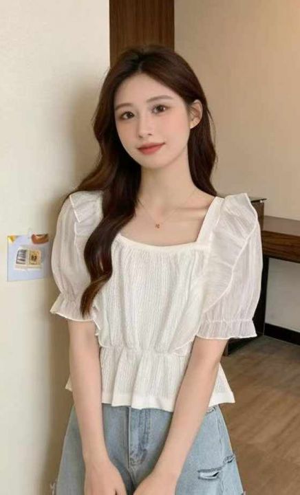 夏季新款品牌原单甜美蕾丝拼接法式方领泡泡袖设计感针织小衫,独立包装带吊牌,均码面料柔软舒适有弹力,1000件,全清5.9元超低价秒杀!分货加一!