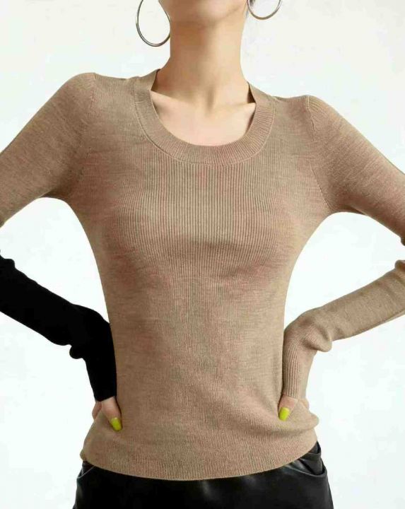 秋冬新款设计款撞色坑条弹力修身显瘦长袖针织打底外穿套头毛衣,独立包装,均码面料软糯舒适弹力大,260件,全清5.9元超低价秒杀!分货加一!