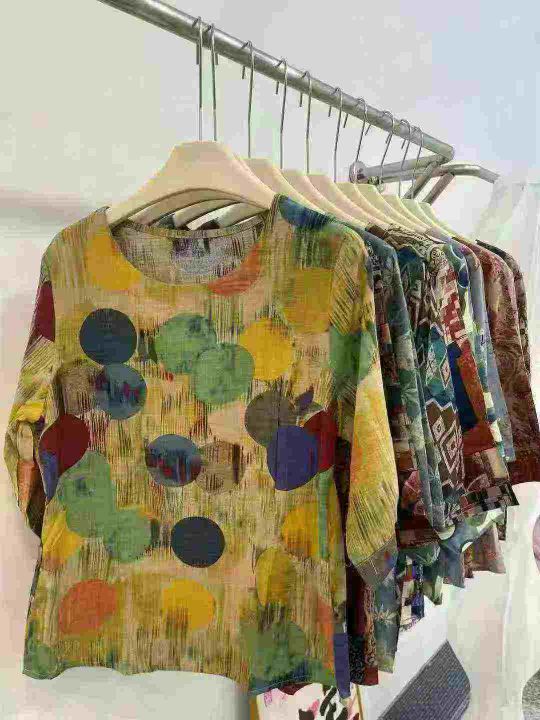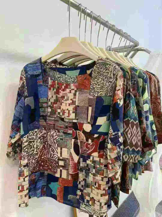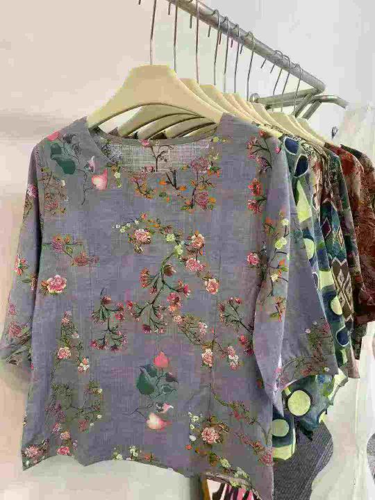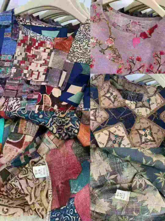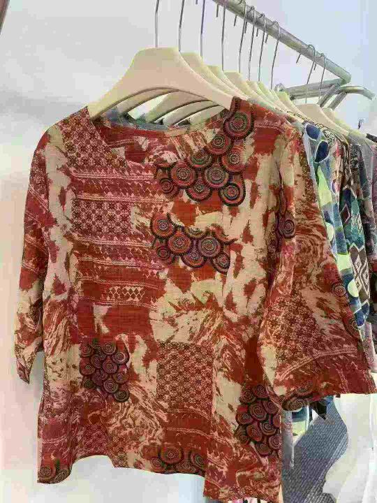 杭派高品质妈妈棉麻系列中袖☕️995件全清9.9 分货+1 ,均码80-130斤,小整十几个花型,精品独立包装,夏季宽松五分袖妈妈显瘦上衣棉麻上衣新款民族风短袖T恤