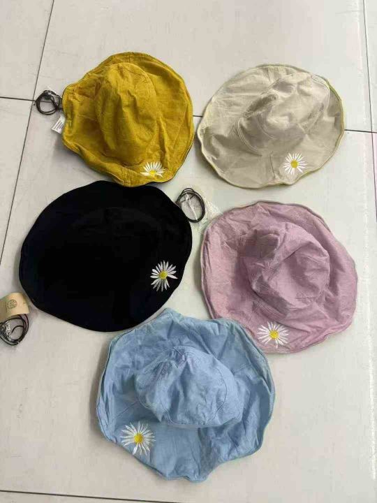1000件双面小雏菊渔夫帽女夏天日系遮脸韩版潮百搭遮阳大沿太阳防晒帽子,棉...