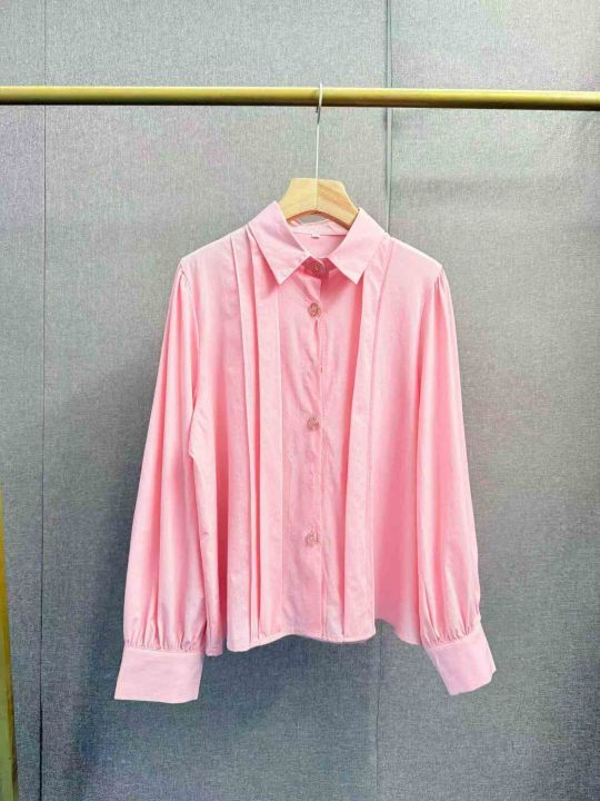 粉色长袖衬衫早春新气质显瘦上衣小众设计感甜美小衫,独立包装,S -2 XL码,180件左右,全清7.8