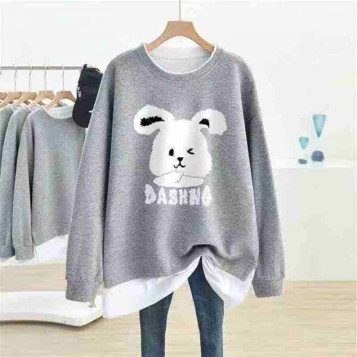 新款百搭简约卫衣洋气假两件时尚减龄圆领显瘦,纯棉有...