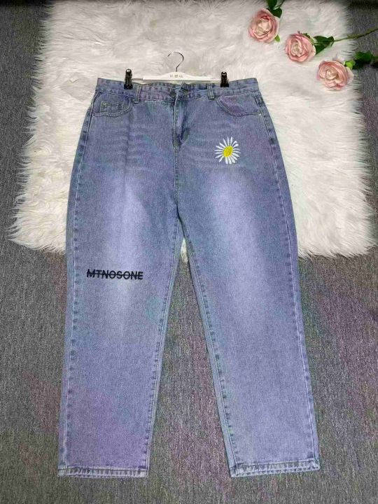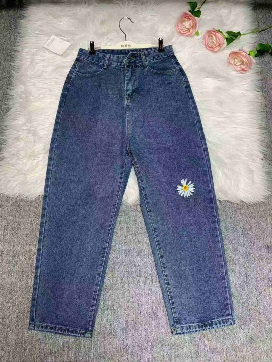 男女同款小雏菊刺绣牛仔裤子直筒阔腿萝卜宽松休闲高腰显瘦百搭牛仔裤1400件,图片系列款,独立包装带吊牌,尺码S~5XL,全清福利价9.8元,分货➕