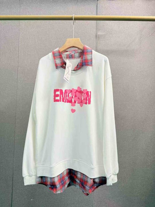 格子拼接假两件新款卫衣少女春秋季初中高中学生宽松洋气,纯棉毛圈,独立包装,S _3 x码,800件左右,清8.8