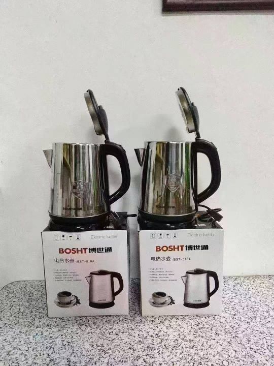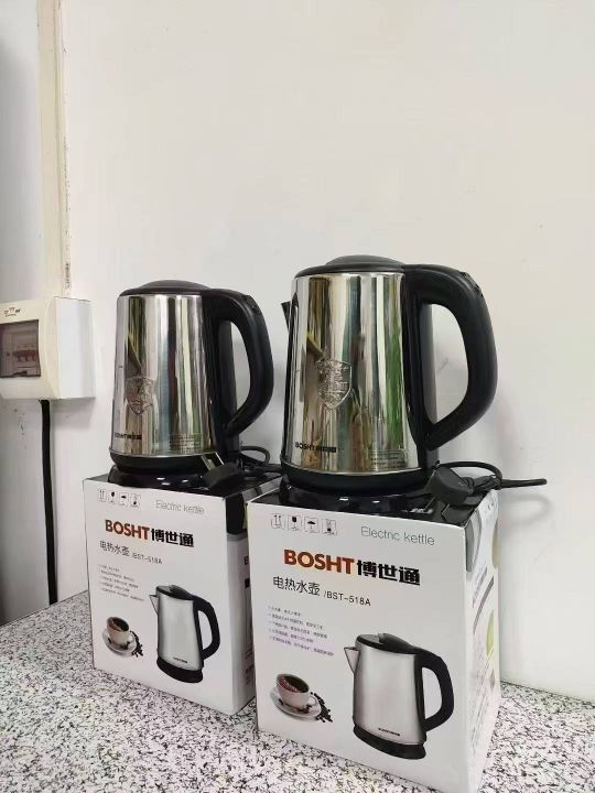 品牌博世通电水壶2000个,国标,1.8升,0.5厚不锈钢,双金温控,全铜线 超大内钢盖,独立包装,原箱原件。