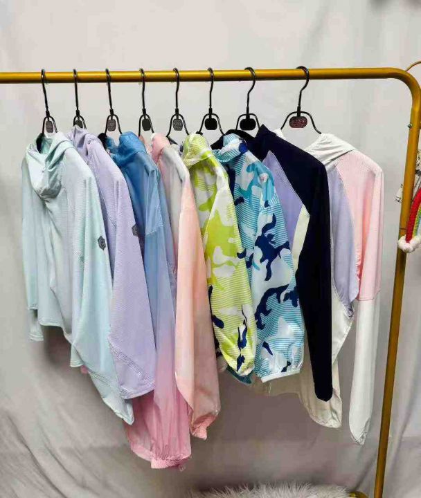 时尚潮流儿童防晒衣一批,不仅视频款,数量220件左右,码数100-150,品质好,拉链式独立包装带吊牌。