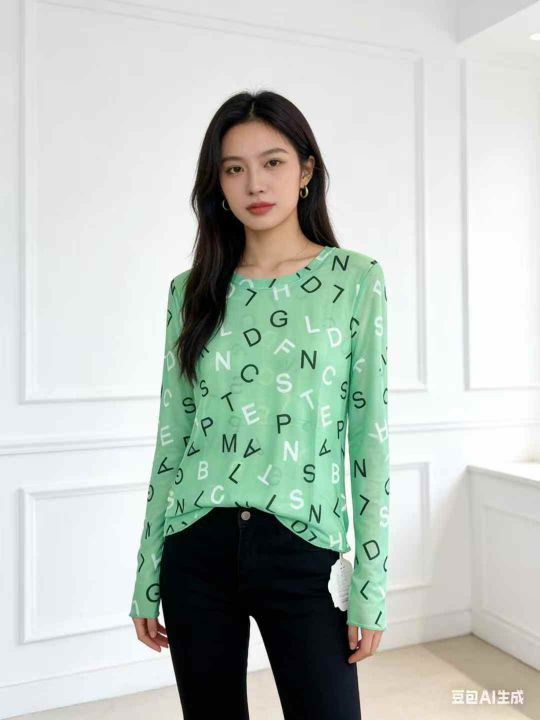 70件满印字母网纱打底衫女夏季薄款t恤圆领内搭长袖冰丝防晒衫,尺码s-2XL,...