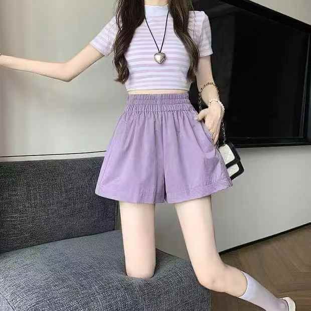 斜纹棉辣妹阔腿短裤女 33条,全清6.8元,正品独立包装,码数~L 单码单色,洗水棉短裤女夏季紫色裤子2026新款松紧高腰宽松阔腿辣妹热裤