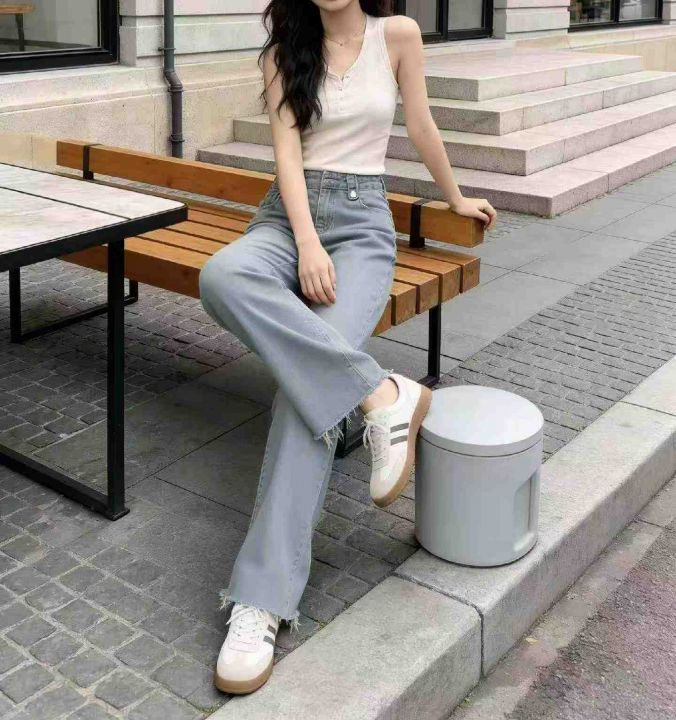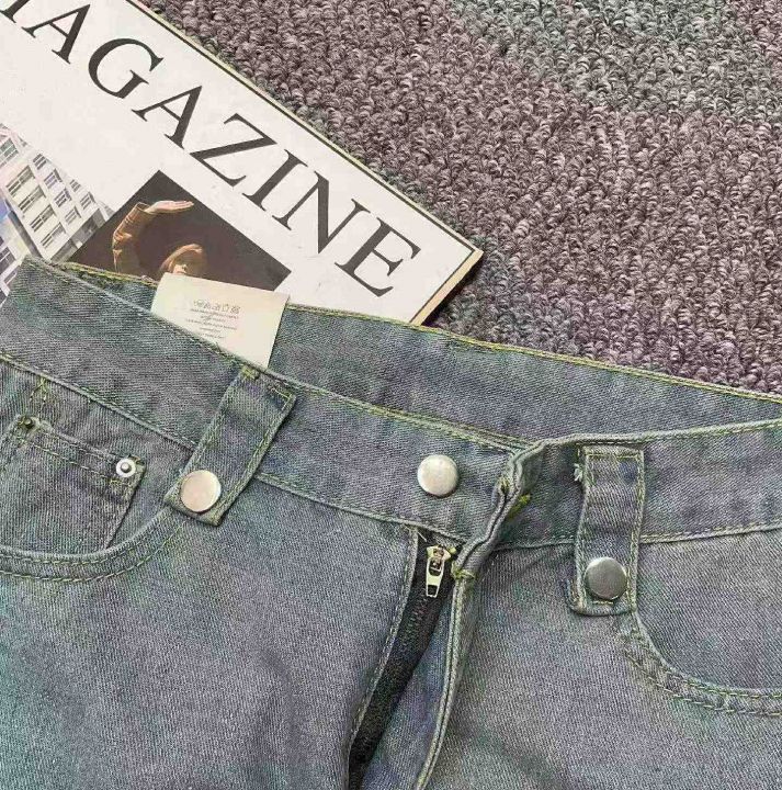 春夏季新款浅蓝色毛边直筒阔腿牛仔9分裤,独立包装带...